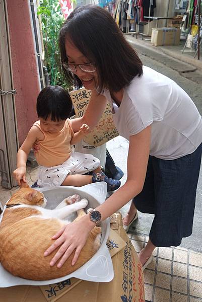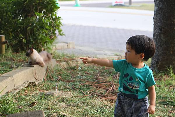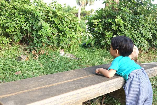 圖為貢丸在前往溜滑梯的路上遇見的日本流浪貓。對動物很有興趣的貢丸在這關被迷惑了很久